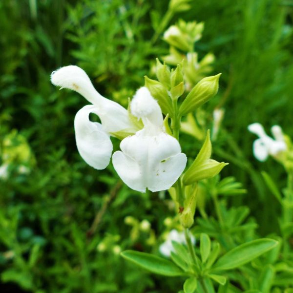 Infiorescenze molto pronunciate a forma di pannocchia allungata dio un bel bianco puro e dall'aspetto lanuginoso. Le salvia farinacea sono ottime erbacee a lunga fioritura adatte ad essere associate ad altre erbacee e. Combinate con le rose danno un tocco di luce creando contrasti molto efficaci. Meglio coltivarla riparata dalle temperature troppo rigide. Resiste fino a 2-3 gradi sotto zero.